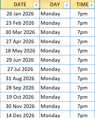 2026 DATES NOT AVAILABLE AT THIS TIME